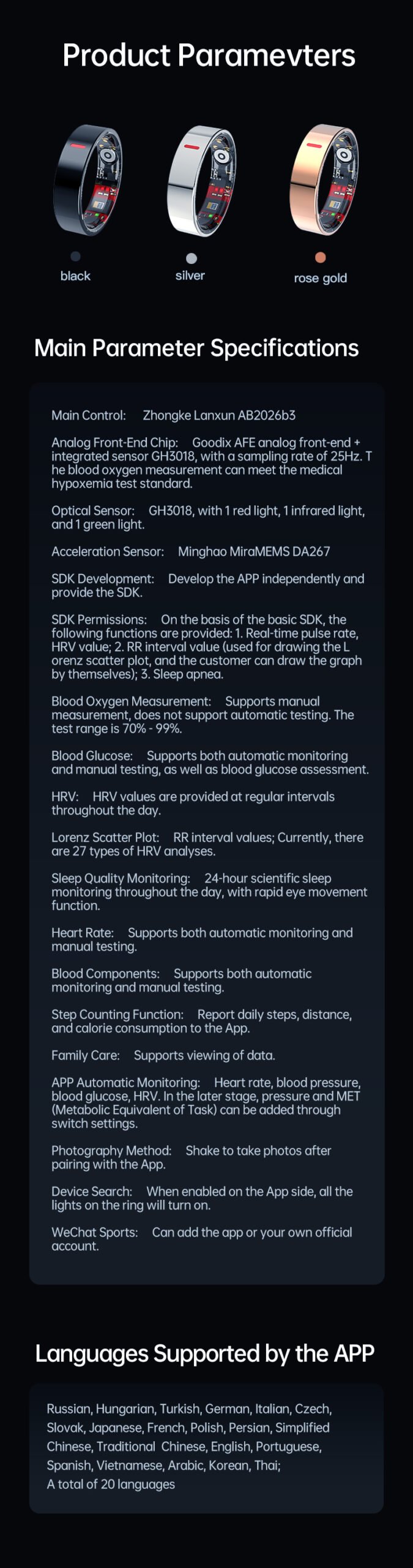 | Color | Black, Silver, Rose Gold |